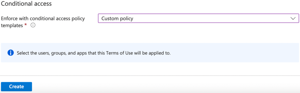 6. Under “Enforce with conditional access policy templates”, select Custom policy.