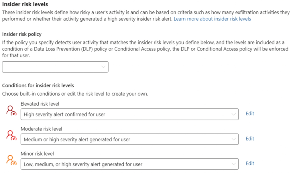3. Under “Conditions for insider risk levels”, select the following: