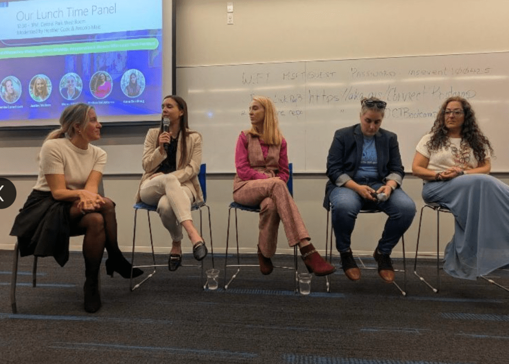The panel “Rising Together: Allyship, Acceleration & Women Who Lead Tech Forward” moderated by Heather Cook and Antonio Maio and held in front of 100 audience members, dove into the critical role of allyship and inclusive leadership in shaping the future of tech. We reminisced on our first jobs, what mentorship and sponsorship means to us, and how AI can help support leaders in amplifying the voices of others.